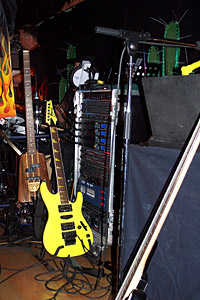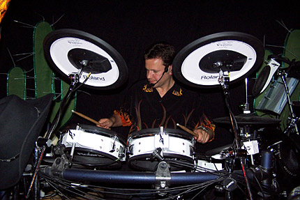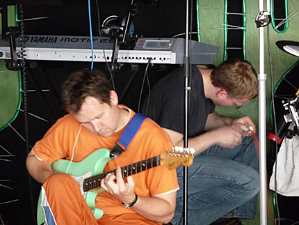 Die Bühne reichte gerade für uns. Zum Glück haben wir keine großen Monitorboxen mehr dabei. |