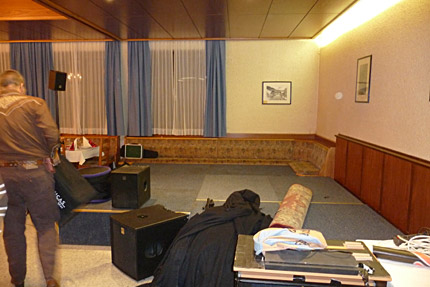 Der Bräutigam war ein guter Bekannter von uns allen als Band und ein guter Freund von unserem Oli F. Daher war es für uns keine Frage auf seiner Hochzeit zu spielen, auch wenn die Anfahrt etwas länger dauerte. Diesem Umstand war es zu verdanken, dass wir bereits am Freitag abend anreisten und im Gasthof mit dem Aufbau begannen. Hier nun unser Bericht!